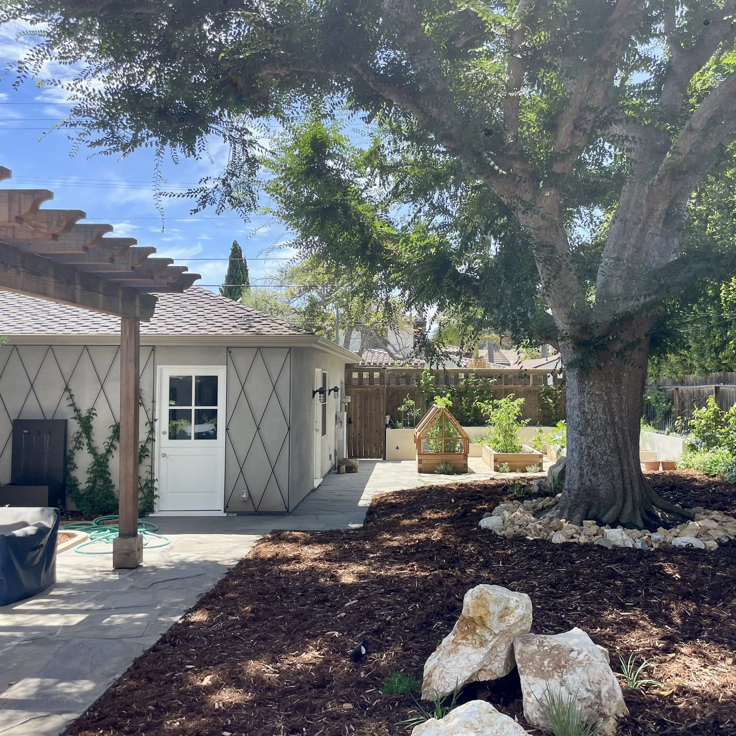 new garage. old tree.